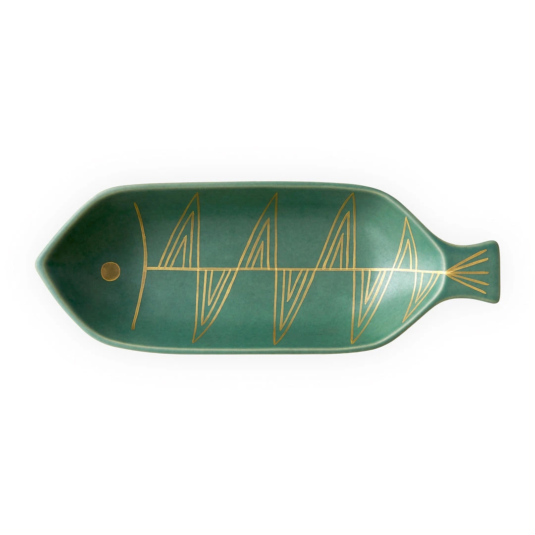 Our warm and modern spin on an Italian tabletop mainstay, our stoneware Amalfi Fish dishes are a catch. Finished with our signature jade glaze and hand-painted with the matte gold details that give them their shine. One is an eye-catcher and a full school makes a chic, sea-inspired moment.