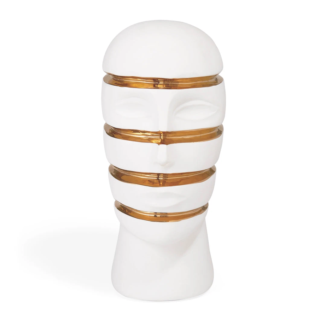 A flawless visage crafted from unglazed porcelain, then sliced to reveal glittering gold cut-outs. Every space needs a head-turner—our Atlas Sliced Bust is it. Perfect on a pedestal in an unused corner of the room.