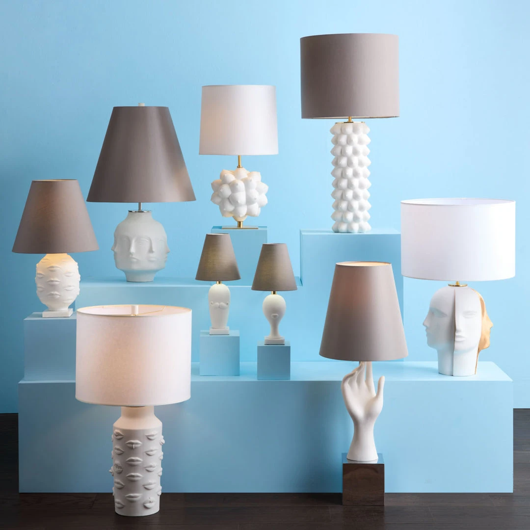 A surreal head-turner, our Atlas Table Lamp features four dual looks—each flawlessly halved visage reveals a matte porcelain profile from one angle, and a glittering gold silhouette from the other. Topped with a white paper shade, it’s the visual treat every tablescape needs.
