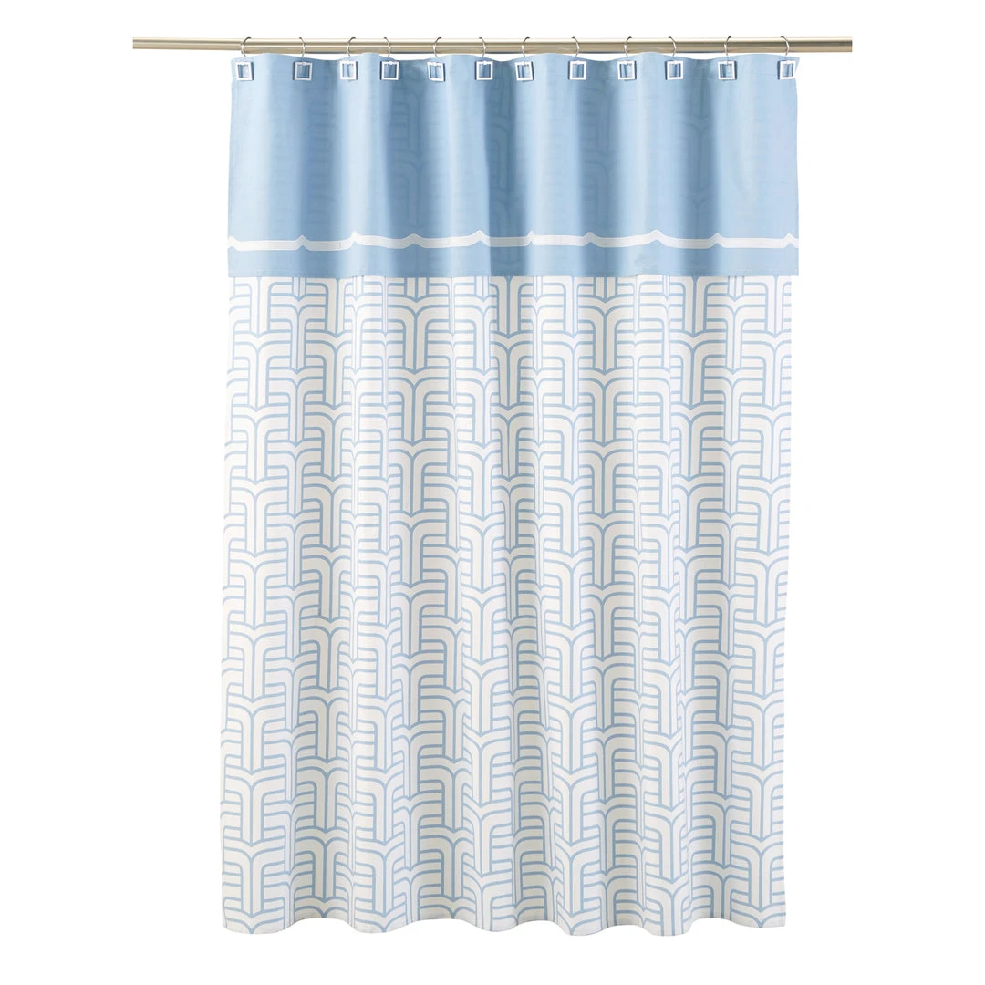 Posh enough for a palace, our Versailles Shower Curtain features our signature pattern in a bright powder blue and fresh white. Tough, thick, and waterproof, it’s also luxuriously soft to the touch. Topped with an embroidered valance for a glamorous finish. Match with our Versailles Bath Rug and accessories collection for a coordinated look.