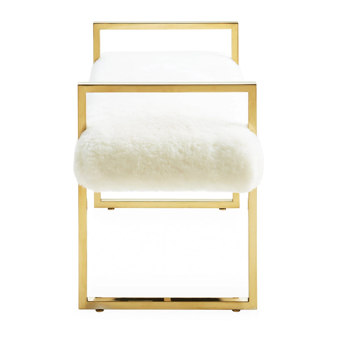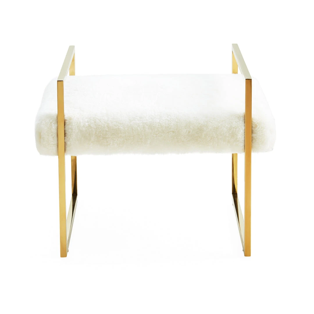 Formal meets fresh, our Beaumont Bench features an architectural yet airy base cradling a cushion in your choice of polished ivory bouclé, cozy sheepskin, light and luxe celadon velvet, bold burnt orange velvet, or a posh pale lavender velvet. Park this petite seat in front of the fireplace or opposite an armchair.