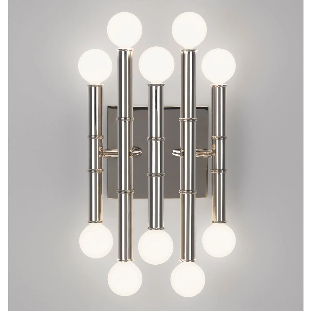 Our modern take on classic bamboo. Our twist on the traditional, iconic world of bamboo adds a bit of socialite glamour to a loft or modernism to a Park Avenue Pad. The Meurice Five-Arm Sconce is ideal for flanking a console and lighting up your boudoir. Available in polished nickel, deep patina bronze, or polished brass.