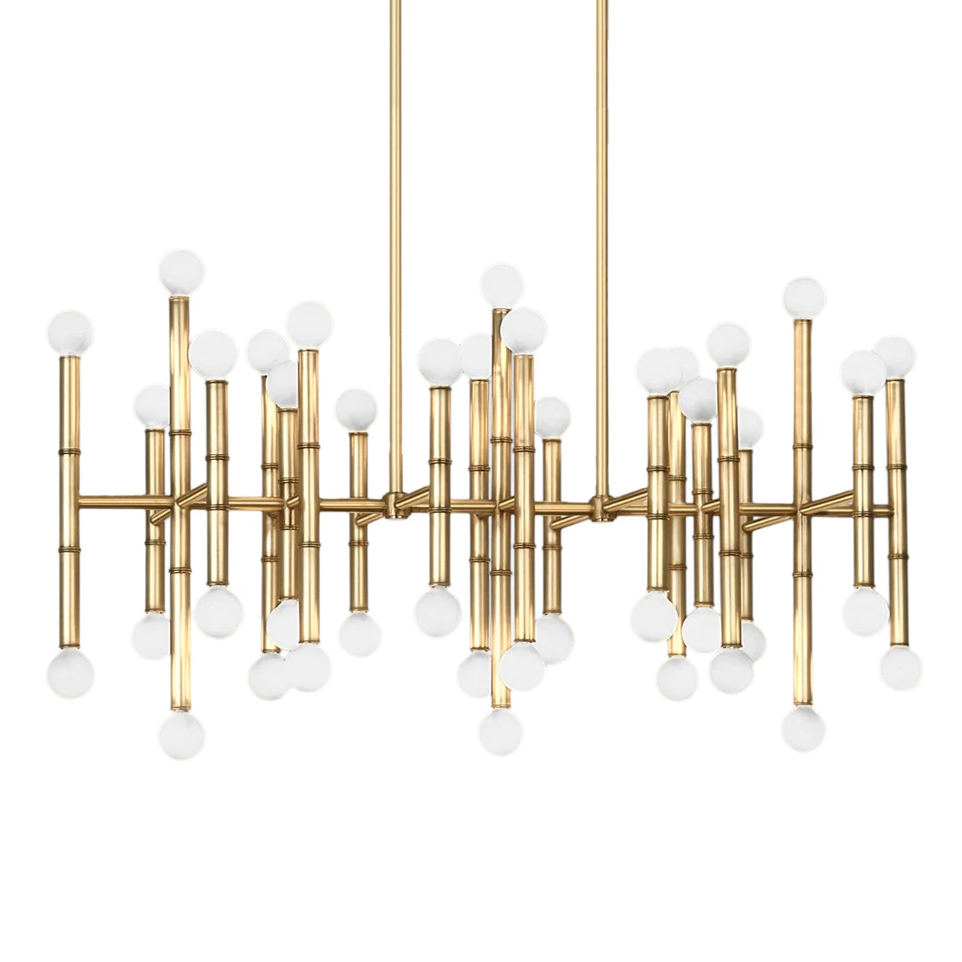 Our modern take on classic bamboo. Our twist on the traditional, iconic world of bamboo adds a bit of socialite glamour to a loft or modernism to a Park Avenue Pad. The Meurice Rectangle Chandelier adds sculptural glow in a narrow hallway or above a dining room table.