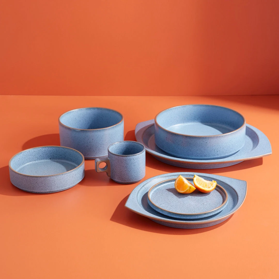 Anchored by our groovy eye-shaped dinner plates and serving platters, this chic and stackable collection does it all. Salad plates double as lids for the bowls (a fabulous feature for dining al fresco table and keeping eats warm), and complementary surf-inspired hues make mixing, matching, and keeping it chic on your open-shelf storage a breezy affair.