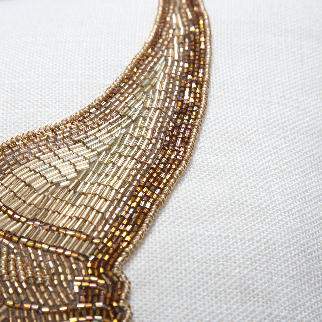 Shimmering gold beads embroidered on white linen—natural attractions you can cozy up to. The perfect rich hippie must-have for your eccentric and eclectic cushionscape. Pair them with solids and watch them pop, or layer them in a room already wild with décor.