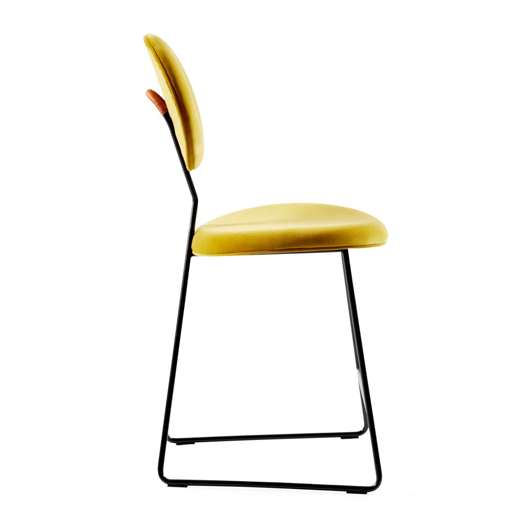 Featuring a round seat and backrest, our Caprice Counter Stool is a chic seat with considered touches, like a sinuous blackened steel frame bent to our signature crisscross and a luxe camel leather-wrapped handle on the back. An inviting addition to your kitchen counter.