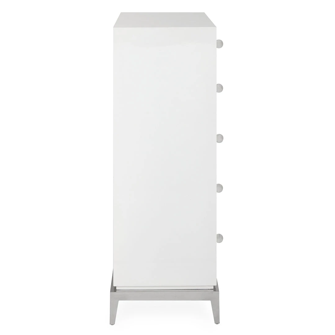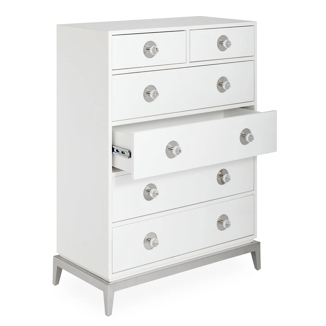 Neo-Classical lines, a dash of Hollywood glamour, and a top note of Mod moxie: that’s our Channing Collection. Stash your stuff like a starlet in four generous drawers topped with two for your extras. Finished in glossy lacquer and featuring polished nickel accents with oversized acrylic knobs.