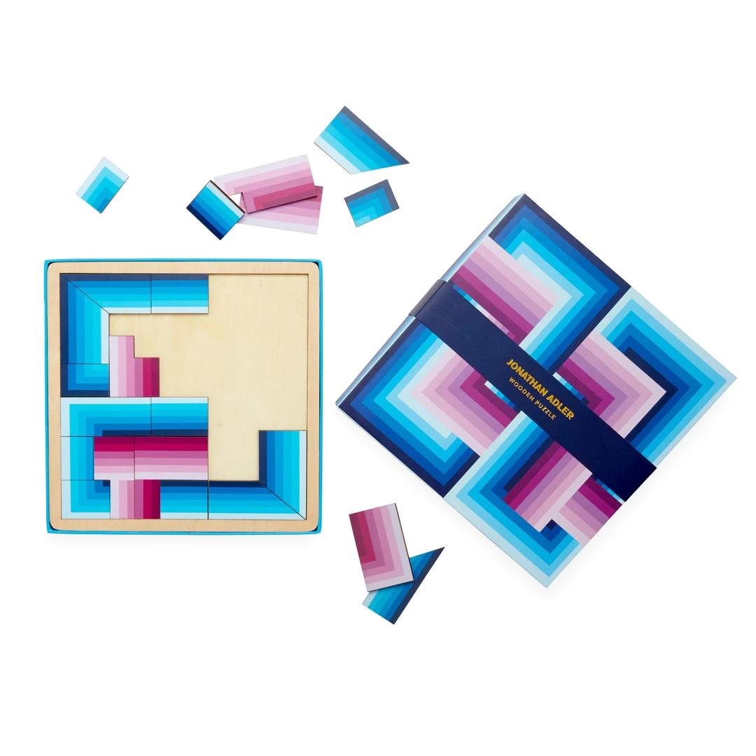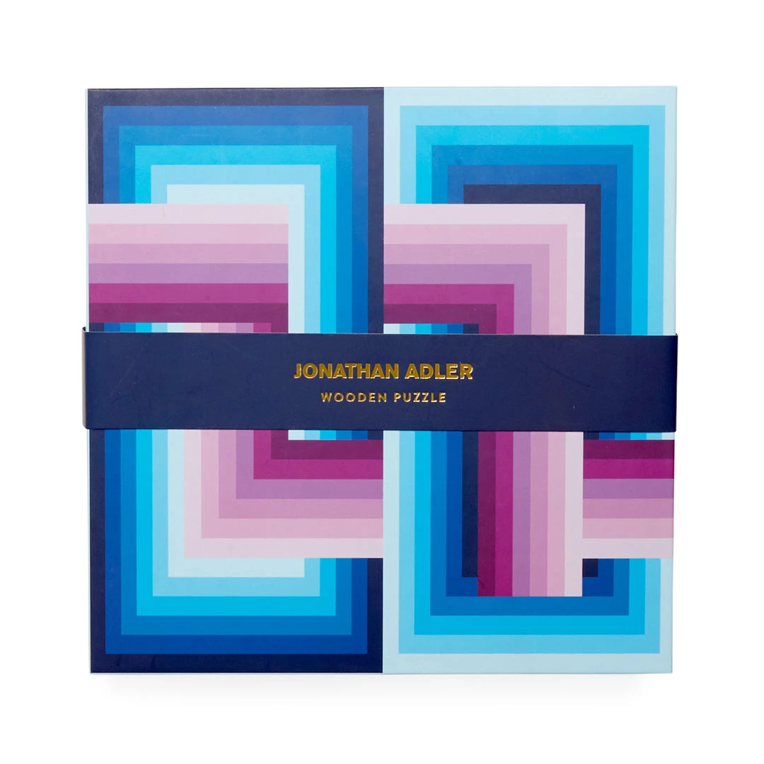 Inspired by 1970s supergraphics, our Infinity Wooden Puzzle’s bold blues and punchy pinks perk up any game night. Packaged in a chic and sturdy matte-finish box that sits stylishly on your cocktail table (and is perfect for storage or gifting).