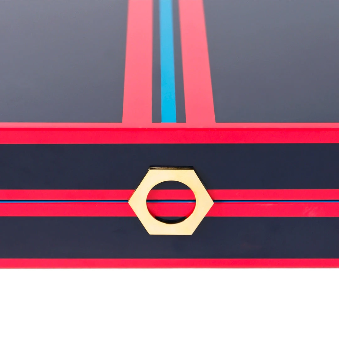 Our Lacquer Backgammon Set is a fabulous combination of function and groovy design. You’d be mad to hide this bright and shiny sizzler, but if you want to, it folds into a chic lacquer box. Looks great closed or open, and it’s sure to add some preppy panache to your pad.