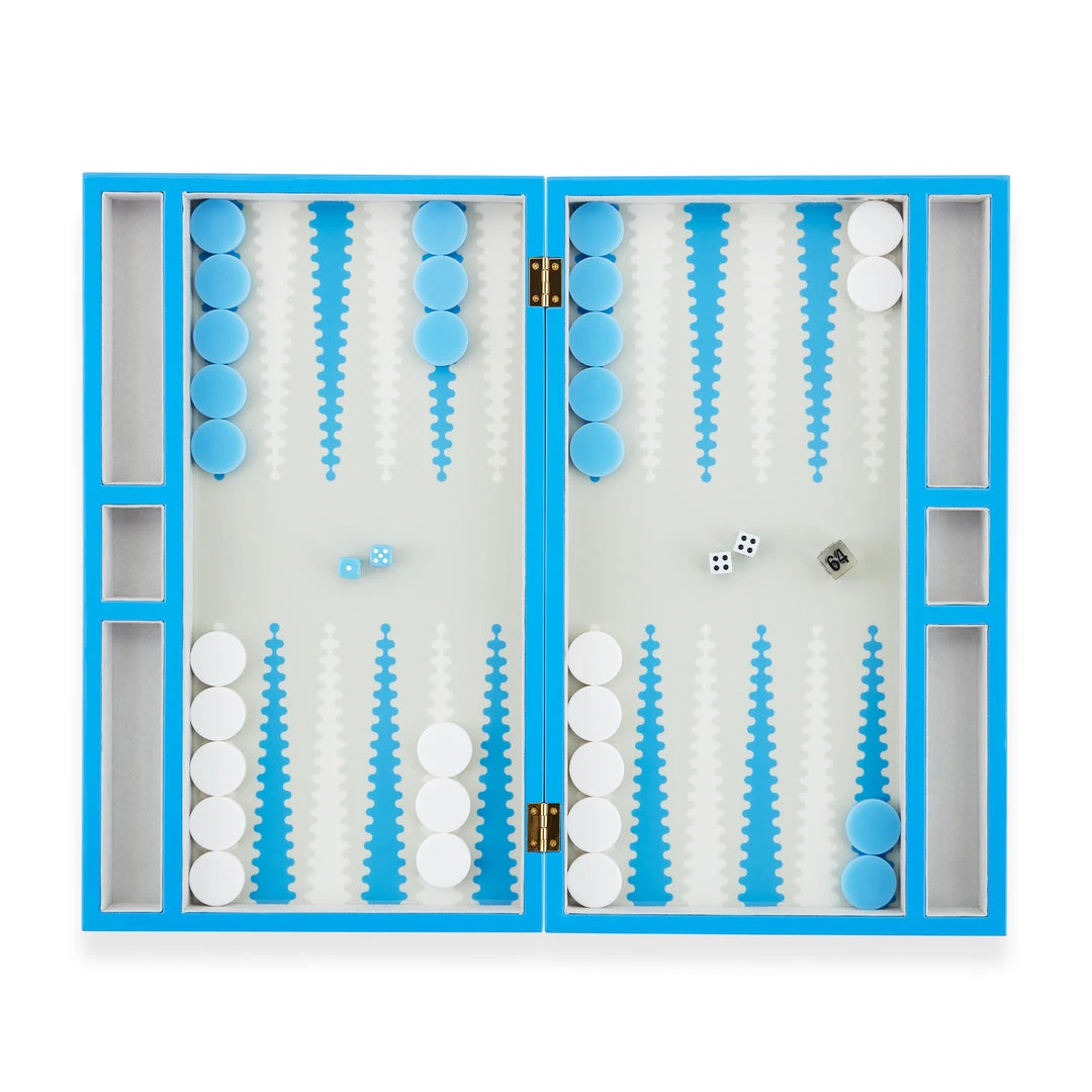 Crafted in couture lacquer and featuring our two-toned wavy border, our Ripple Backgammon Set is just the edge your game night needs. After vanquishing your foes, fold it closed for a cool cocktail table accent.