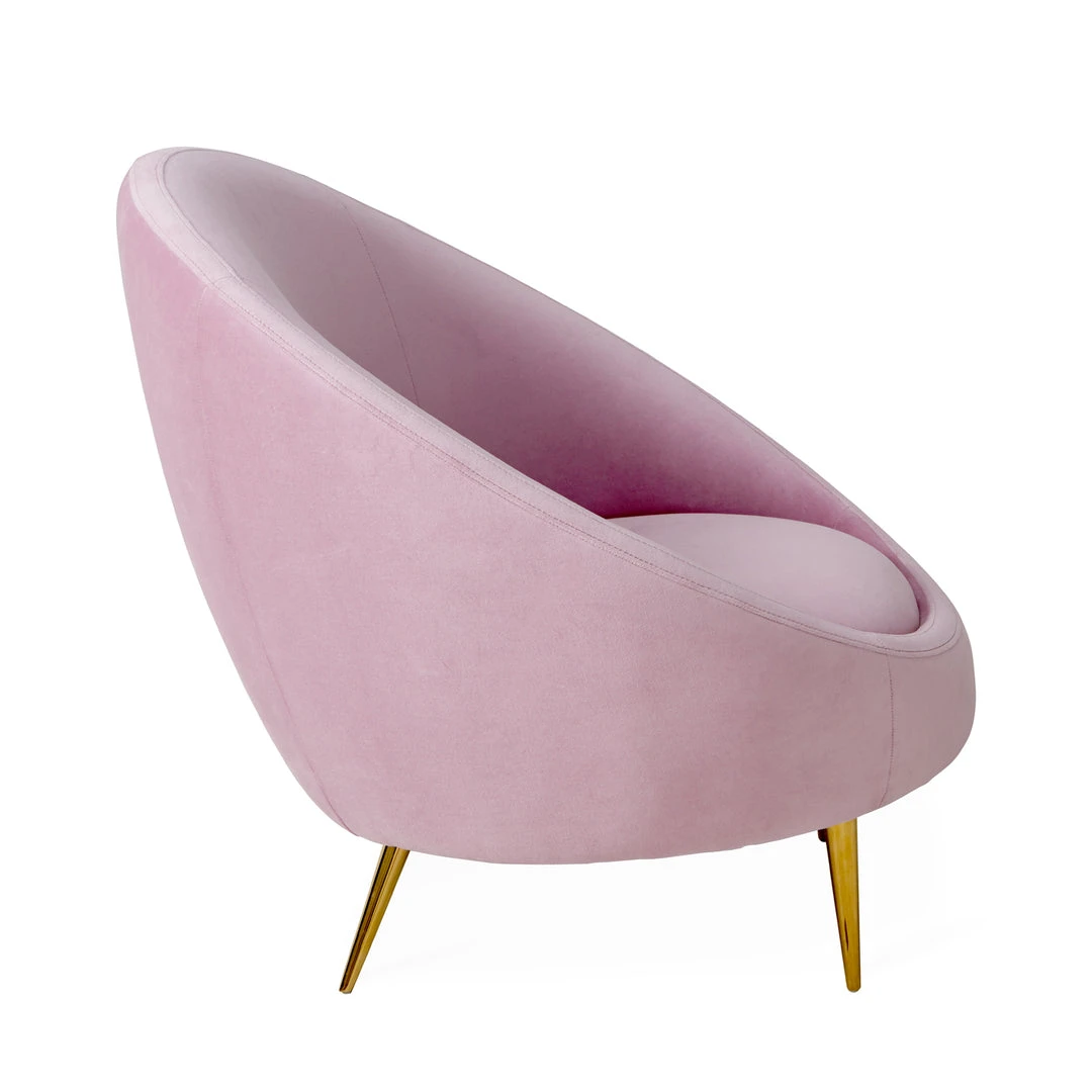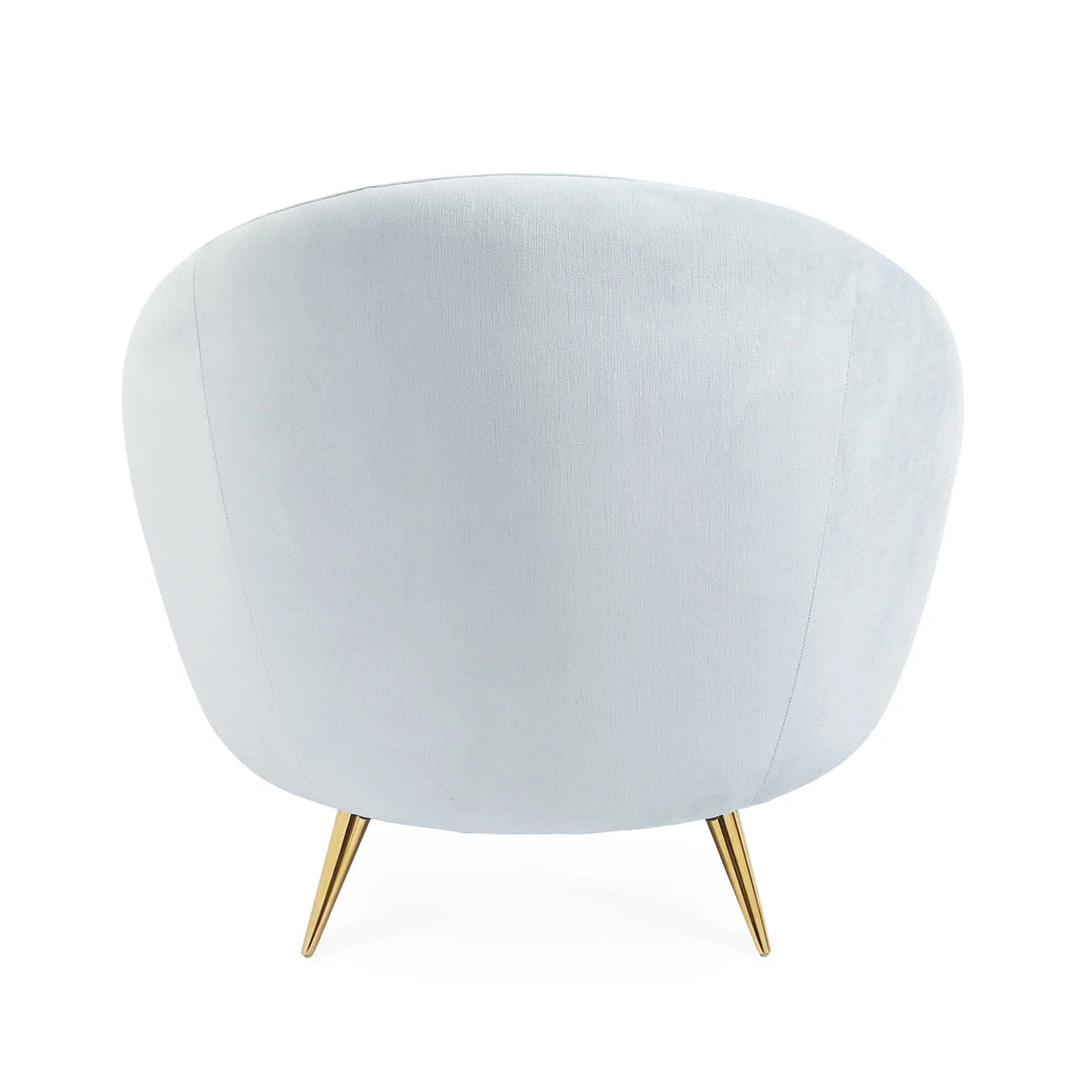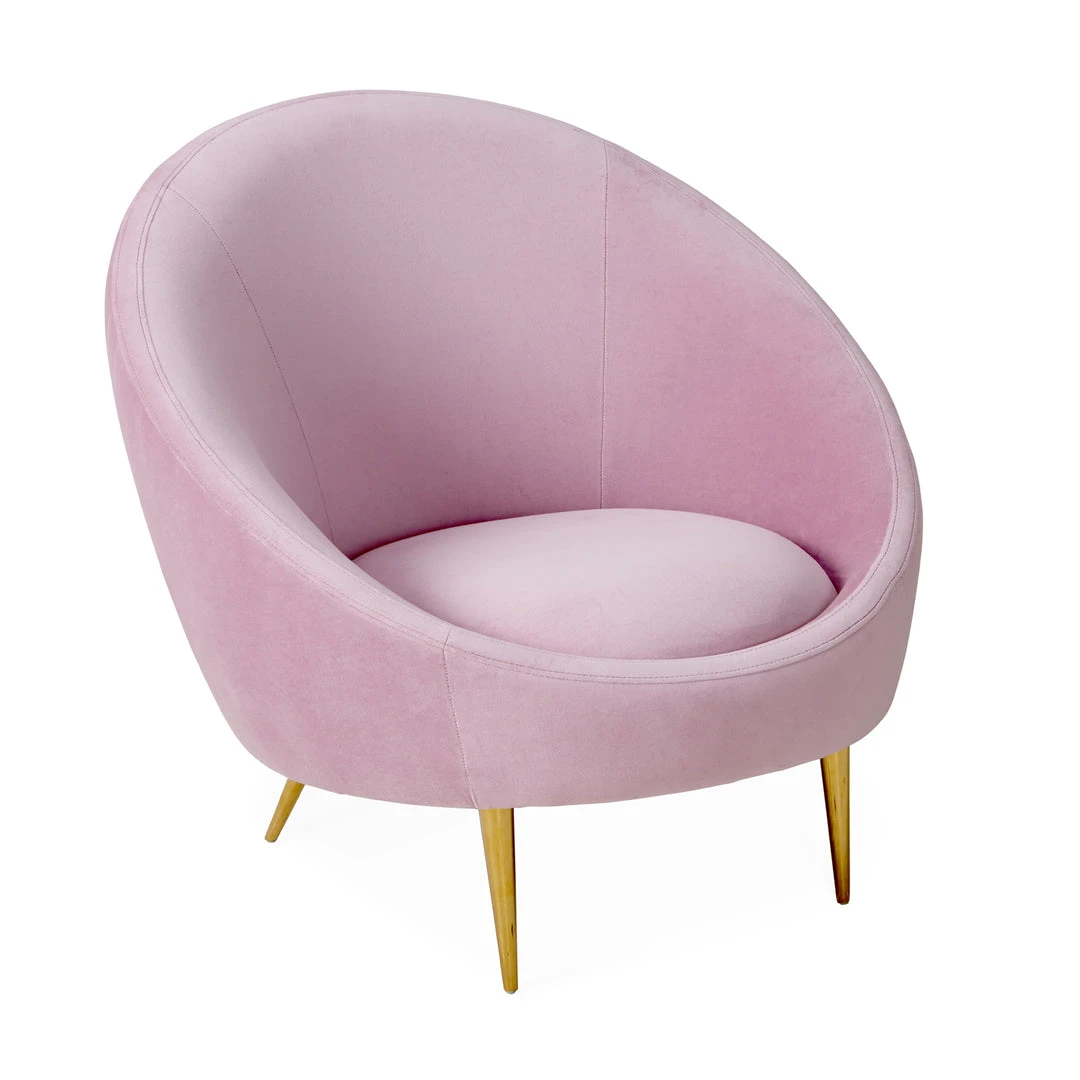 Our sleek Ether Chair packs a powerful punch. The Minimalist gesture of the capsule-inspired silhouette provides surprising comfort, while gleaming brass stiletto legs add lift and polish fit for a formal parlor. Elegant and exceptionally hardworking velvets—an airy, icy blue, or posh pale lavender—finishes off the fabulousness, or create a haute hygge moment with super-luxurious shearling.