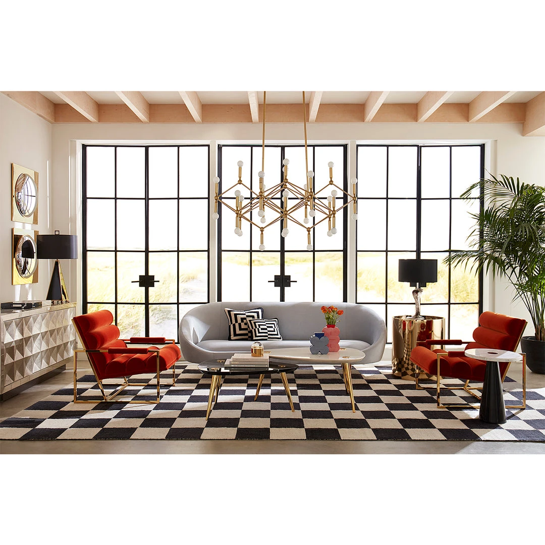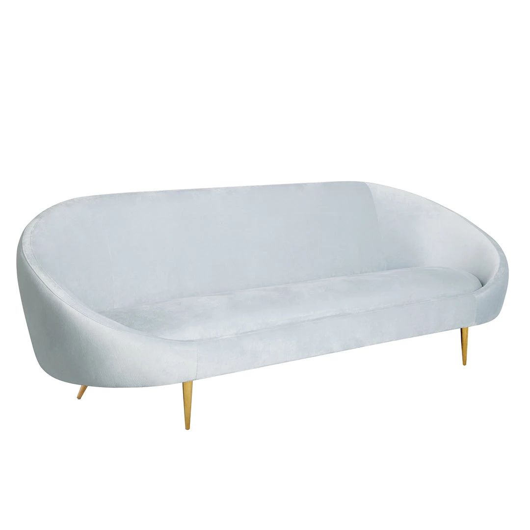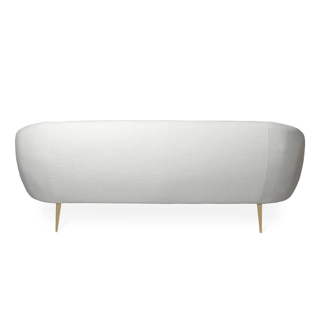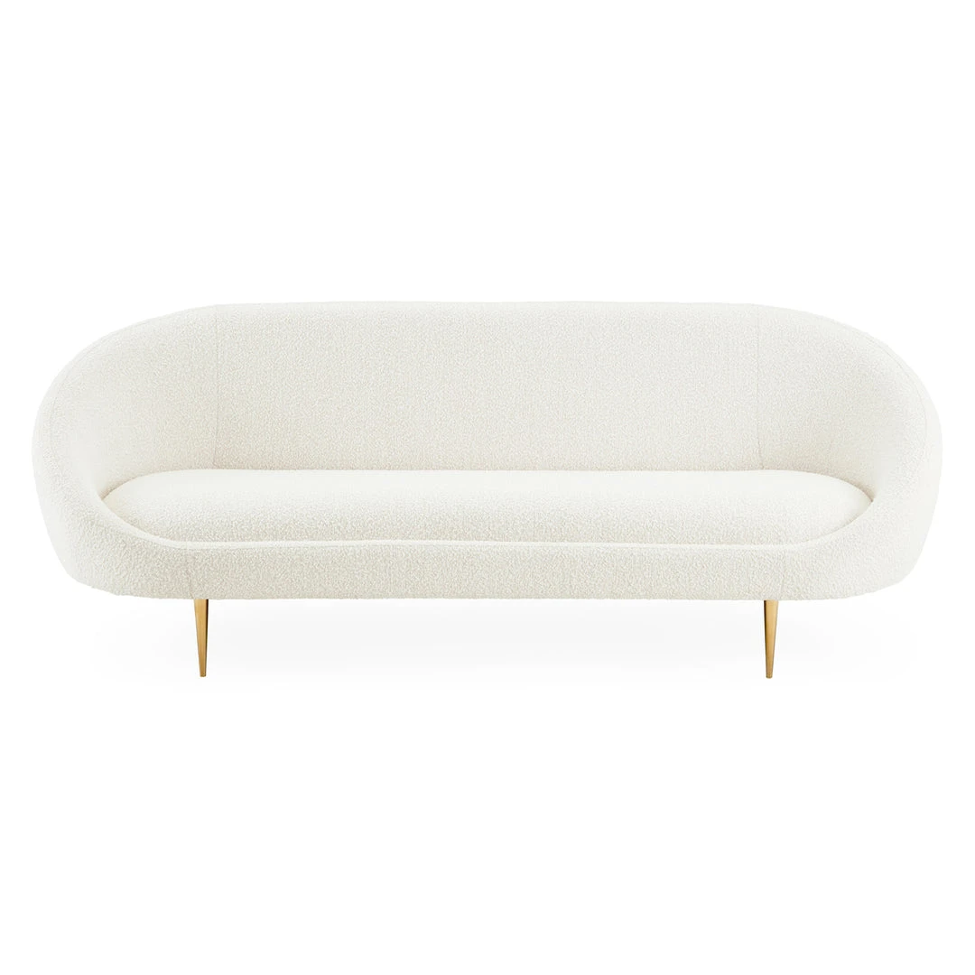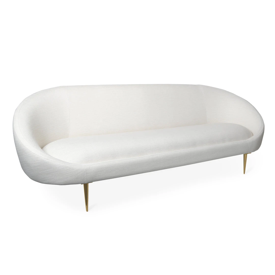 Low, loungey, and incredibly comfortable, our Ether Sofa has a simple genesis story: Jonathan wanted to create a sofa that looks and feels like heaven. The lozenge-like silhouette is enveloping and inviting, while gleaming brass stiletto legs add lift and polish fit for a formal parlor. Ethereal yet edgy, it’s elegant enough for a chic sitting room, but cozy enough to be your favorite spot to binge-watch. Striated icy velvet glows with dreamy hints of silver and blue, oatmeal bouclé is a warm and nubby neutral, or float on fresh, cloud-hued woven upholstery.