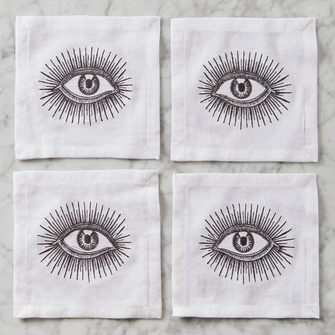 The perfect pairing with cocktails and canapés, these beauties even elevate basic bar nuts. Embroidered on luxe linen, our alluring eyes add an elegant and avant-garde touch to your evening.