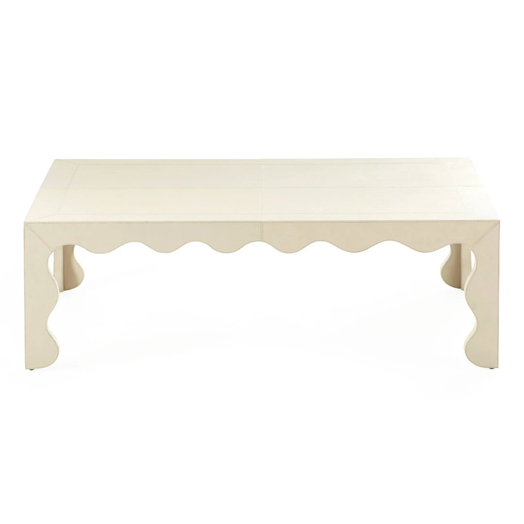 Simple form meets luxe material in our Flow collection. Featuring an undulating edge, our Flow Leather Console is crafted from pebbled leather in two forever favorites—versatile bone and mariner blue hues—each with timeless topstitched borders. A leather-lined bottom shelf offers generous space for styling books and décor. The perfect piece behind a sofa or a luxe entryway.