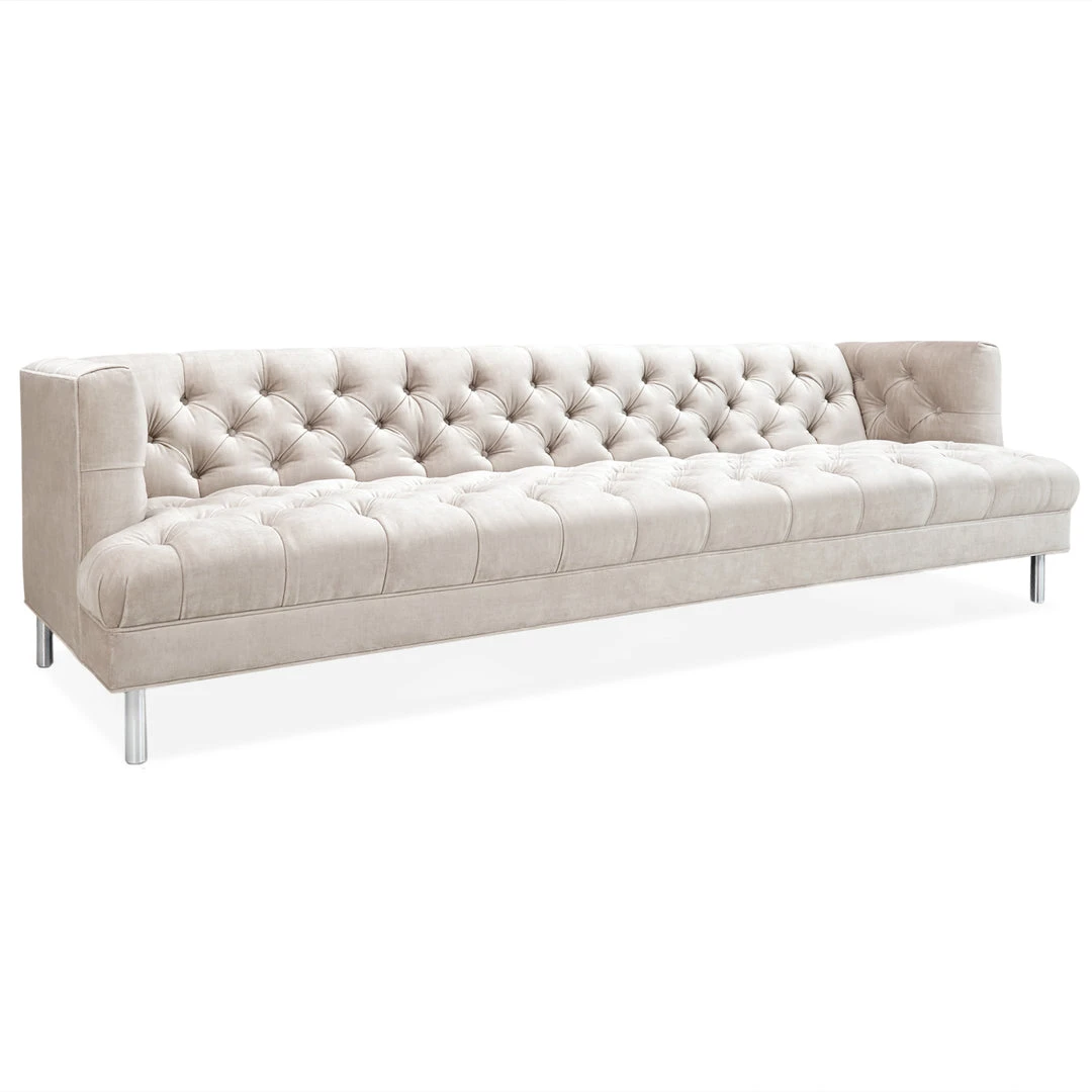 Our customizable take on the classic Chesterfield style—tufted comfort meets clean lines. The cutback t-arm shape balances the formality of a high-back tuxedo sofa with the inviting vibe of a more casual, low-armed seat. Très luxe in a living room or a comfortable, chic addition to any modern library or study.