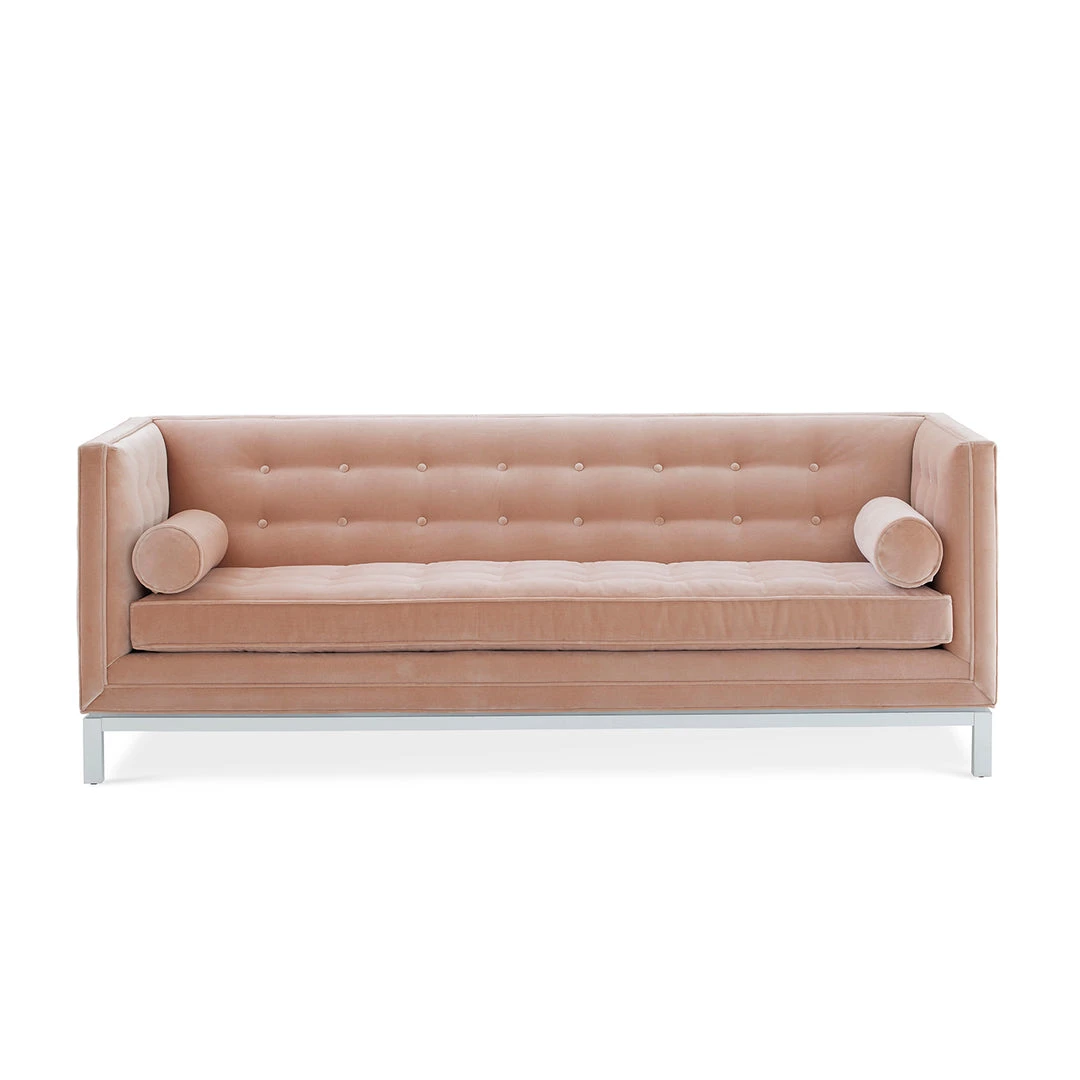 Our Lampert Sofa hits all the right notes—the high tuxedo back gives it an elegant yet formal presence, while the bolsters make it super comfy. Explore our custom upholstery program—you can’t go wrong with velvet. Our favorite combinations? Firenze Teal with a White base evokes Hollywood glamour, Verona Smoke lends a little uptown swank, or Verona Emerald with an ebony base oozes moody Chinoise elegance. Mix and match your favorite fabrics and finishes to suit your style.