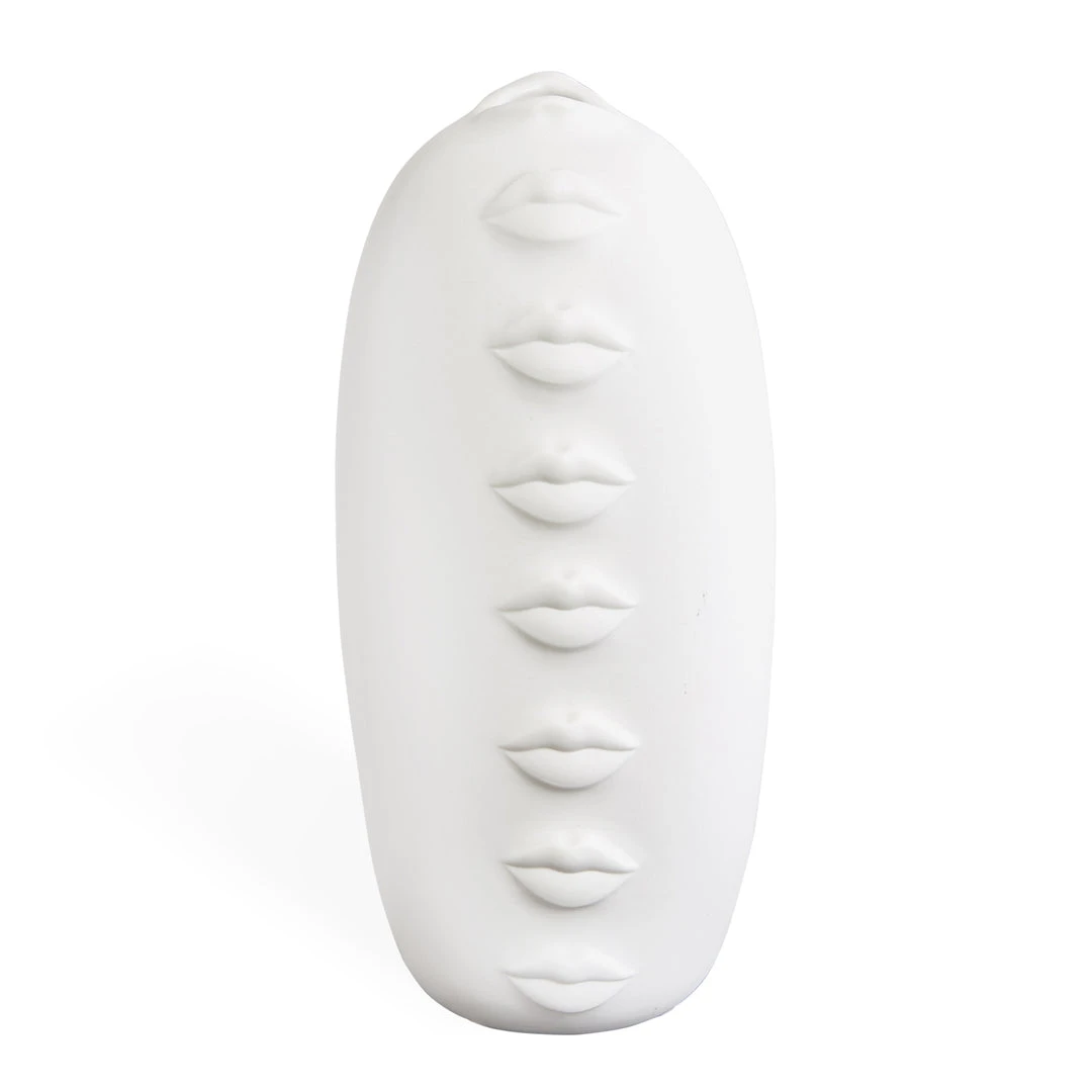 An expressive line-up of moody mouths run down the side of a vessel crafted from unglazed porcelain. A kiss of cool for your table, mantel, or shelf.Inspired by Gala, wife and muse of surrealist painter and printmaker, Salvador DalÃ.
