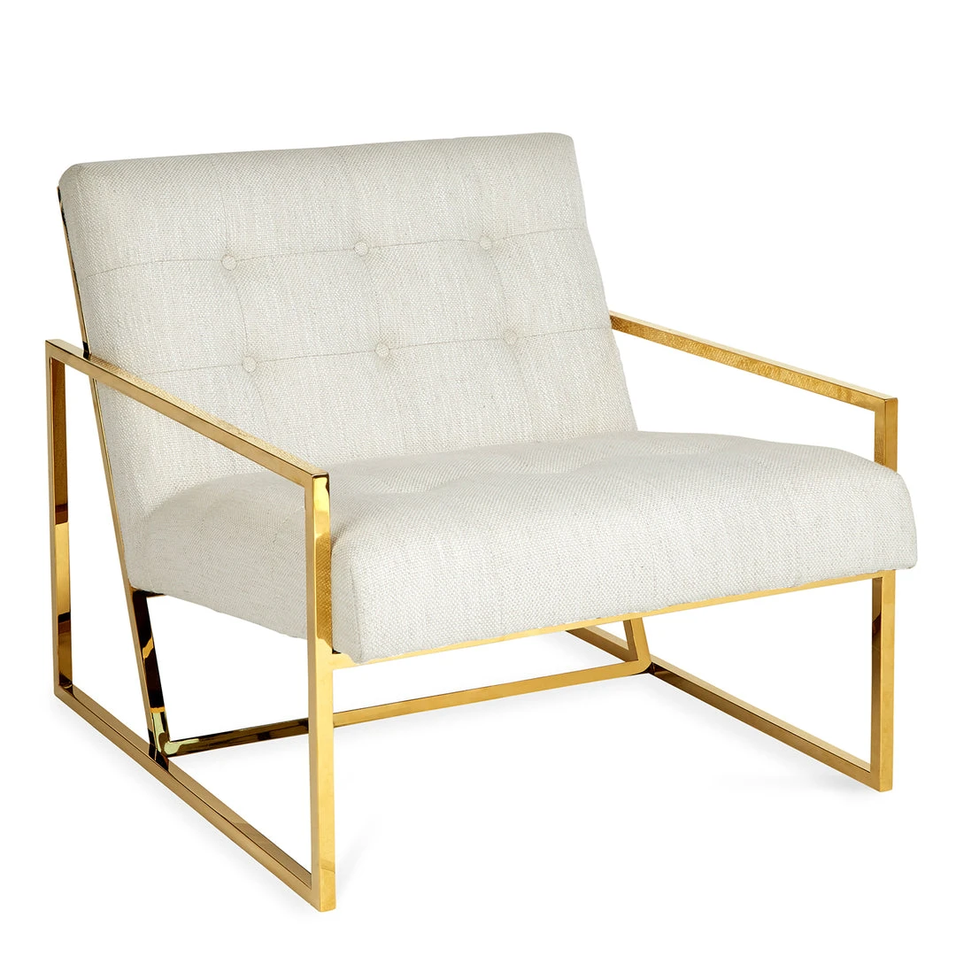 Pared down geometry in polished brass meets swanky Rialto Navy velvet. The perfectly pitched seat and soft, button-tufted cushions make this rigorously minimal seat surprisingly cozy and comfy. The definition of leaned-back luxury—a little bit ’70s, a lot today. Our Goldfinger Lounge Chair adds a modernist vibe to your Park Ave pad or swanks up your mid-century abode.