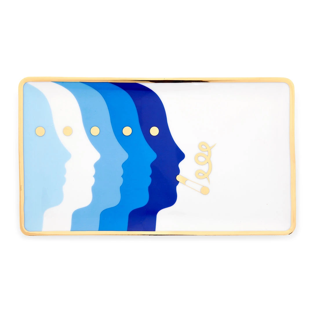 Featuring trippy profiles layered in brilliant blues, our Atlas Rolling Tray is a fast and fabulous way to give any tablescape instant edge. Paired with our signature smokestack and crafted from glossy finish porcelain with sparkly gold accents, it’s an elevated way to show off your subversive side while corralling the small stuff.