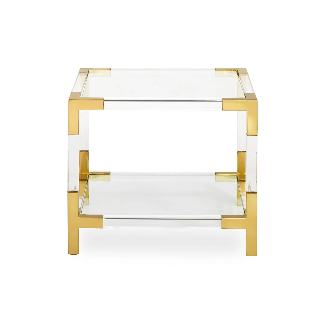 In luxe clear acrylic with brushed brass accents, these petite cubes are perfect next to your sofa, by your bed, or saddled up next to your favorite chair. A second shelf offers plenty of space for storage and styling your favorite books and baubles. The perfect blend of simplicity and glamour, modern and traditional.