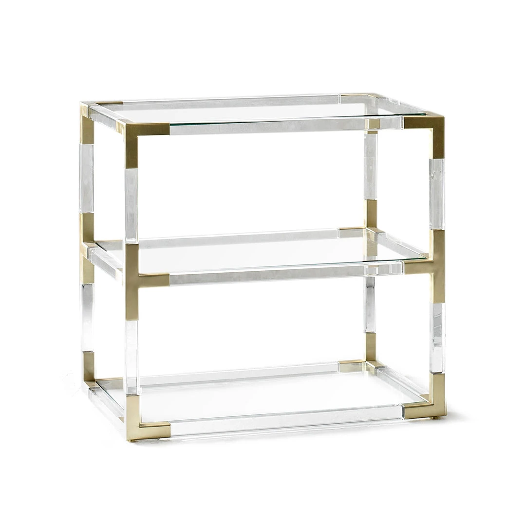 At 66 cm high, our Jacques Two-Tier Side Table is the perfect complement for any high-armed sofa, and it doubles delightlyfully as a chic nightstand. Luxe clear acrylic, warm brass accents, and a simple silhouette work in endless interiors, from minimalist to maxilmalist.