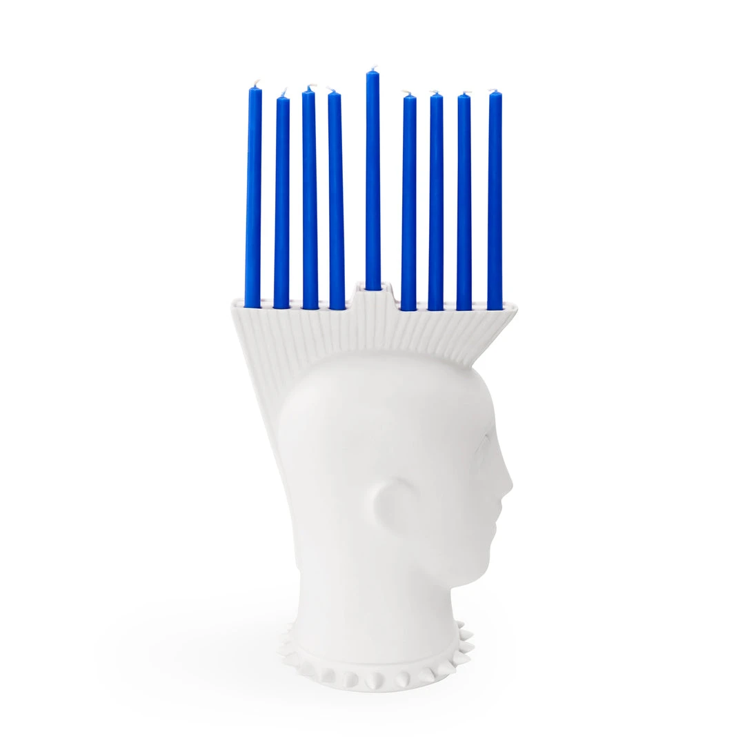 For an unexpectedly fierce festival of lights, our Mohawk Menorah pairs punk-inspired glam with posh unglazed porcelain. This icon of 70s subculture starts its journey in our Soho pottery studio where Jonathan and his team hand-sculpt the original model in clay. The prototype is then sent to our partner workshop where skilled artisans produce each menorah in high-fired porcelain.