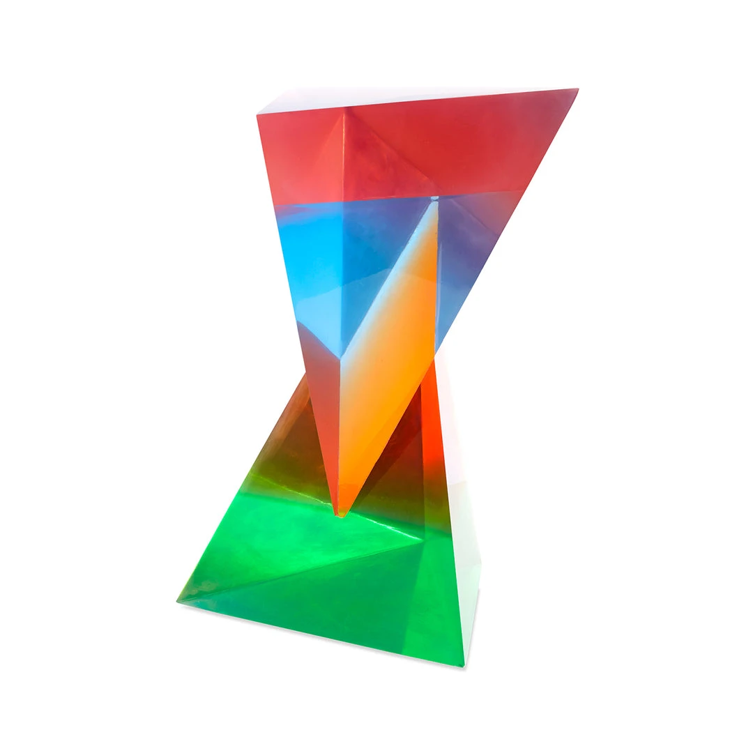 We harnessed the optical majesty of acrylic to create the perfect perch for drinks. Our elemental Neo Geo Drinks Table is made from counterbalanced pyramids of jewel-toned acrylic that visually meld to look different from every angle. A functional sculpture that adds Pop Art panache to your Park Avenue pad.