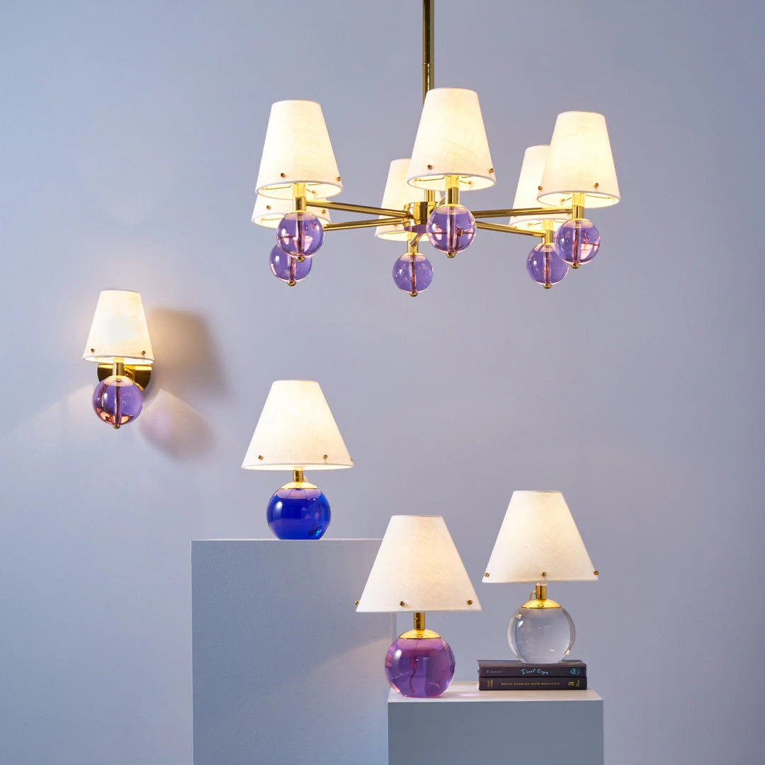 The ultimate jewel for your ceiling—six luminous, gem-toned crystal balls on warm brass framework, each topped with a brass ball trimmed lined shade. Our Belvedere Six-Light Chandelier is a glamorous go-to for glowing up your dining space or a luxe touch in your living room.