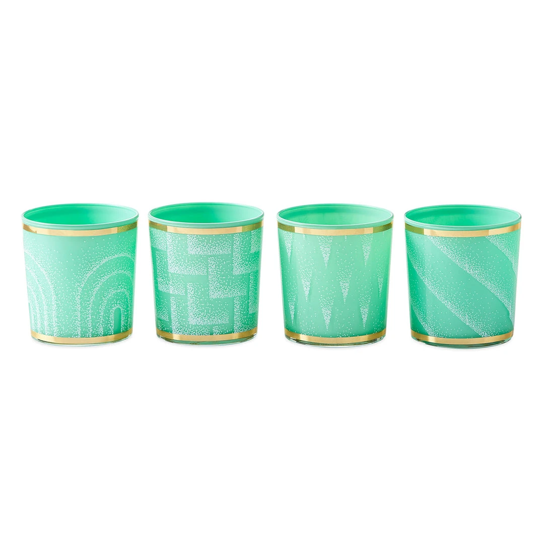 Inspired by 30s Art Deco airbrushing, our Vapor patterns strike the perfect balance between timeless and today, Deco elegance, and a wink of 1980s style. Our gilded Vapor glasses are perfectly posh in a green hue that works like a neutral. Let them wow at a glamorous table or cocktail hour. Packaged in a couture gift box, this four piece set is the perfect housewarming or hostess gift (or just keep them for yourself!).