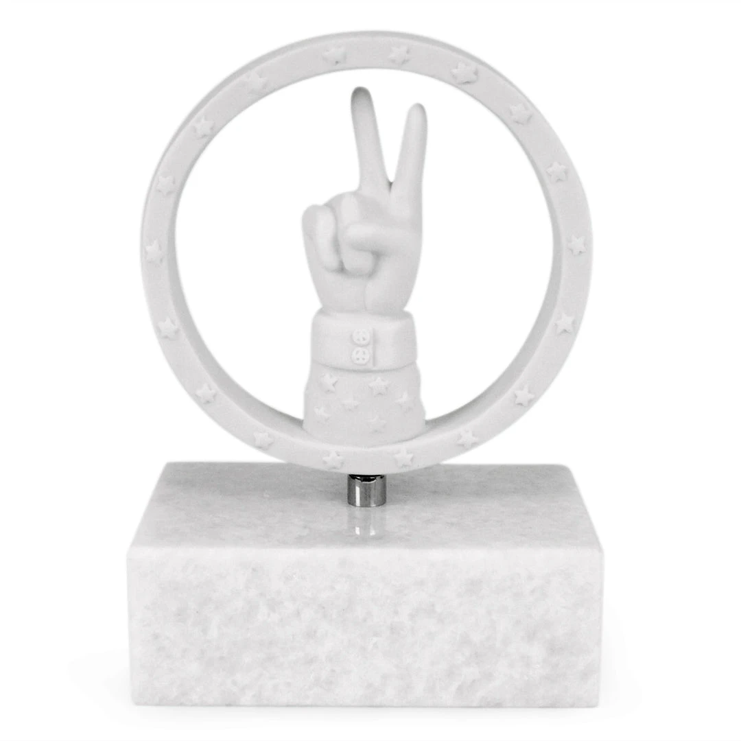 Unleash your inner flower child and give peace a chance. Keep your tomes from toppling with our 60s-inspired statement sculptures are crafted from haute couture porcelain with an unglazed matte finish, then poised atop luxe marble platforms. From your shelf, mantel, or desktop, they’re a groovy way to let guests know what you stand for—peace, love, and chic.