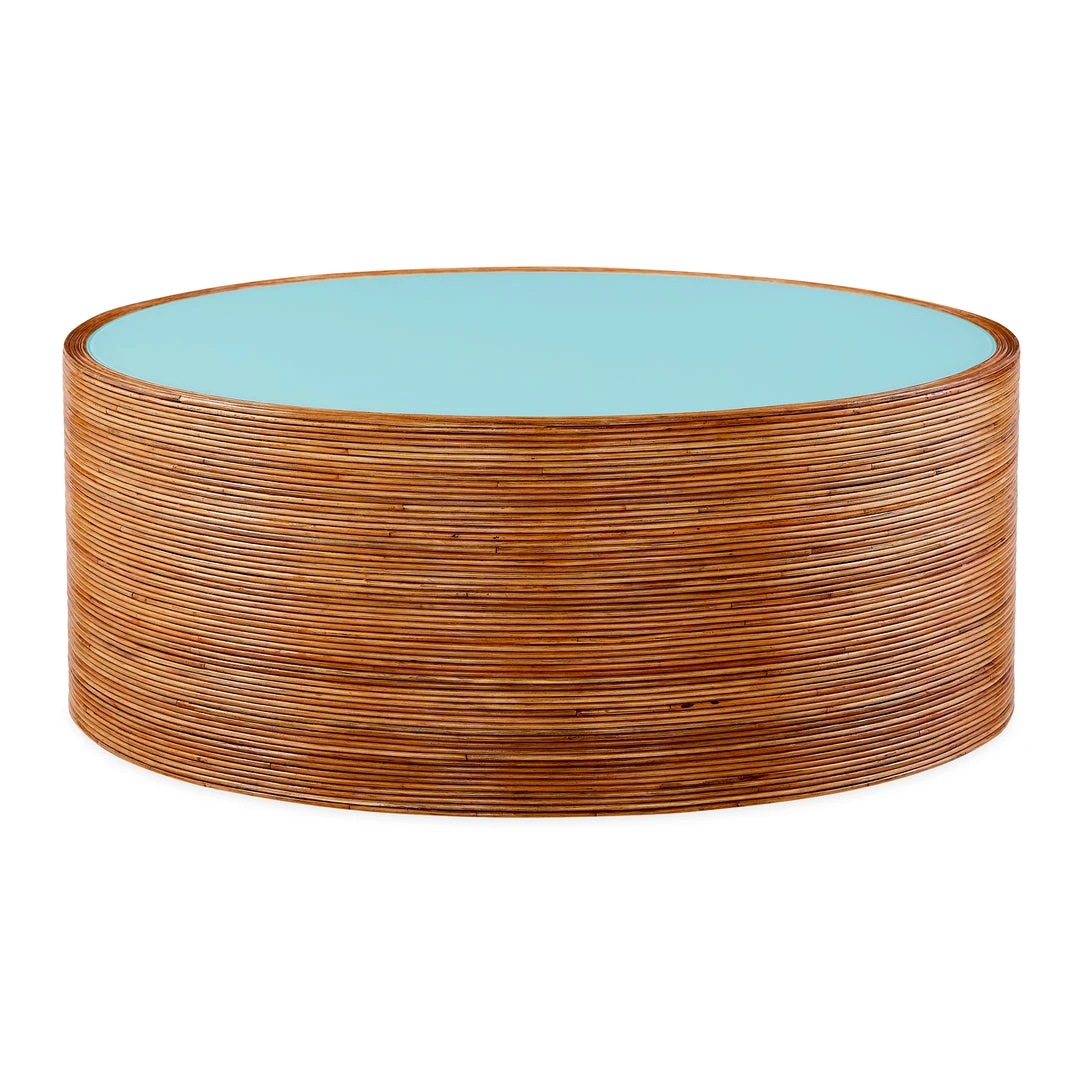 Our Riviera collection is the update on classic French 50s rattan you’ve been waiting for. Evoking grand global glamour, our Riviera tables are feats of exquisite craftsmanship—reeds are steeped in water, then hand-coiled and fastened to framework for a stacked effect. Finished in a honey-toned stain coated with glossy lacquer, the result is a rich, room-warming neutral worthy of its sun-drenched namesake. Topped with back-painted glass in sea-inspired celadon, our Riviera Large Cocktail Table is fabulous in front of any chic sofa.