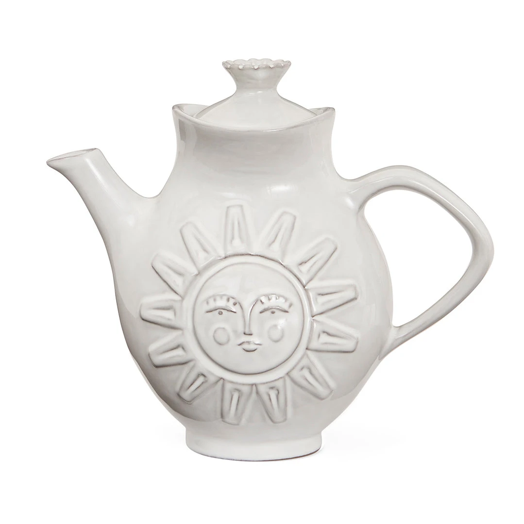 A masculine sun on one side and its feminine counterpart on the other: our reversible Mr. and Mrs. Sun Teapot gets guests talking at the table.