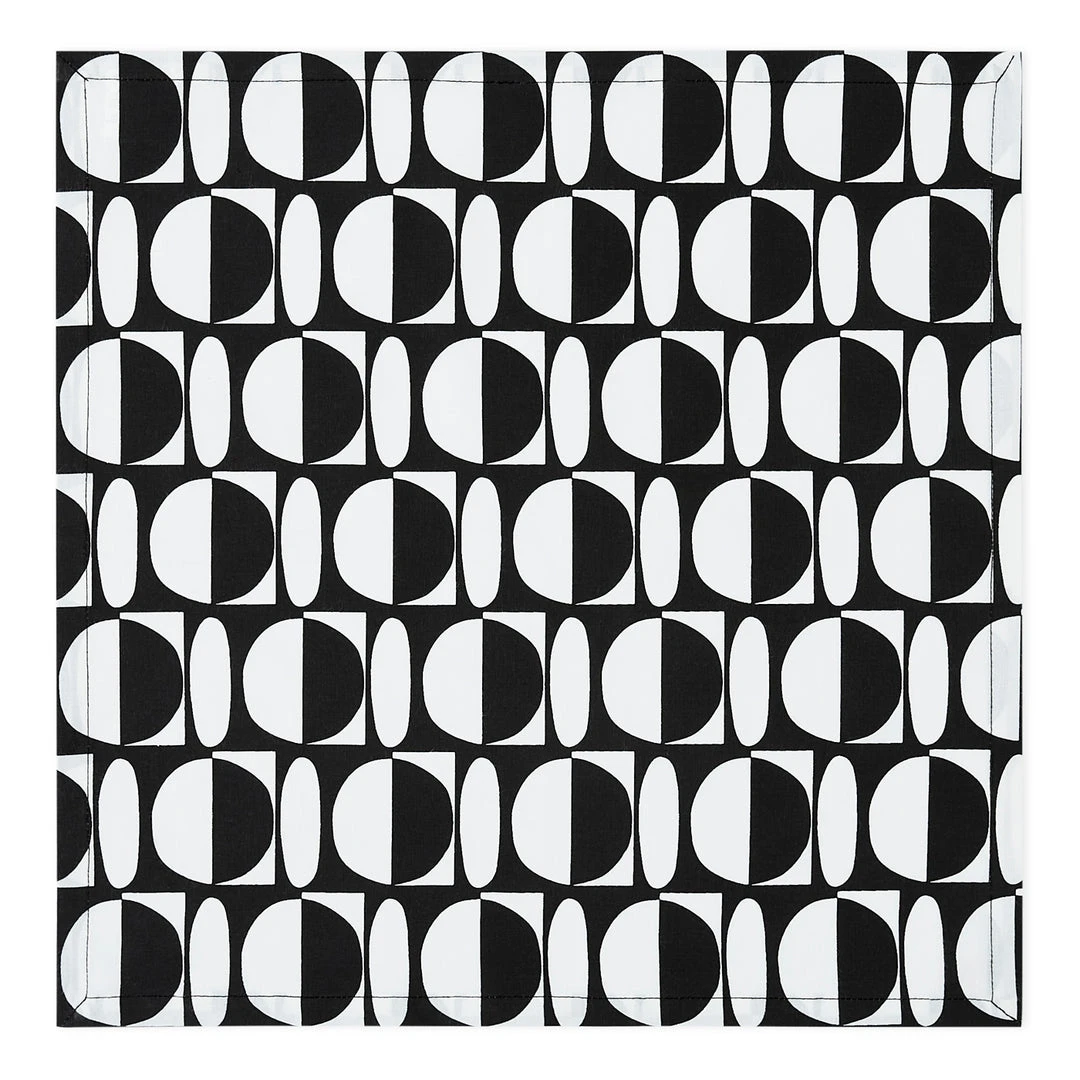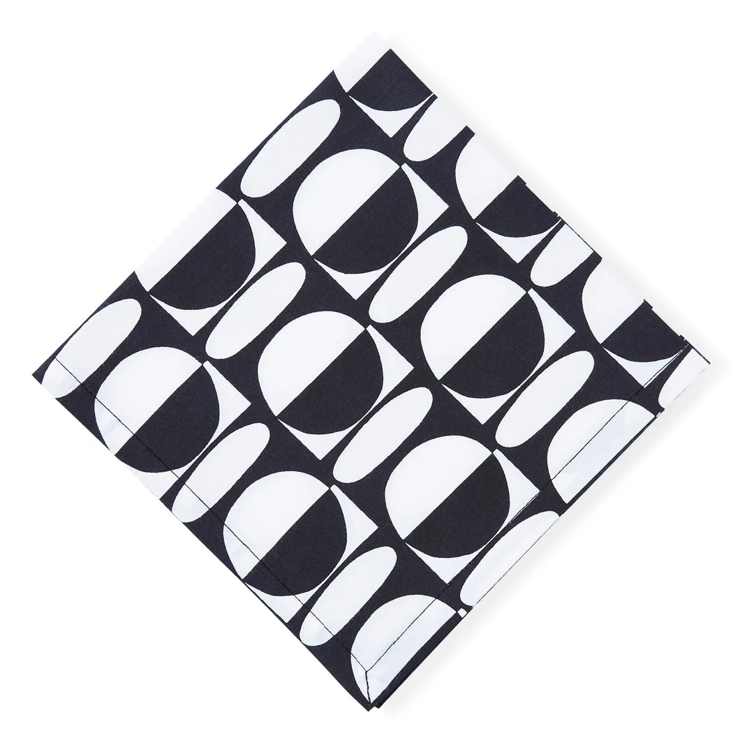 Our modernist, op art inspired cotton Vallauris table linens feature graphic black and white geometrics. Add a playful pop in a colorful tablescape or surrender to the timelessness of black and white. Match with our Vallauris placemats and Big Sur dinerware for a coordinated, soulful look. Boxed for easy gifting, our table linens are the perfect present for your favorite host, to celebrate a housewarming, or to give your own tabletop a fresh touch. Set of four.
