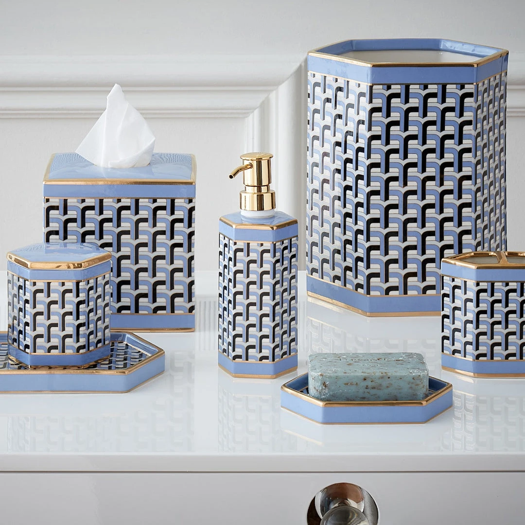 Posh enough for a palace, our porcelain Versailles bath accessories feature our signature patterns dynamically deconstructed for a 21st century twist. Accented with gold, this classic-meets-cutting-edge collection is the glamorous upgrade every loo needs. Match with our full range of Versailles bath accessories for a coordinated look.