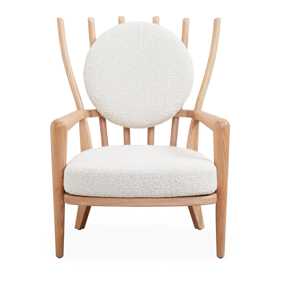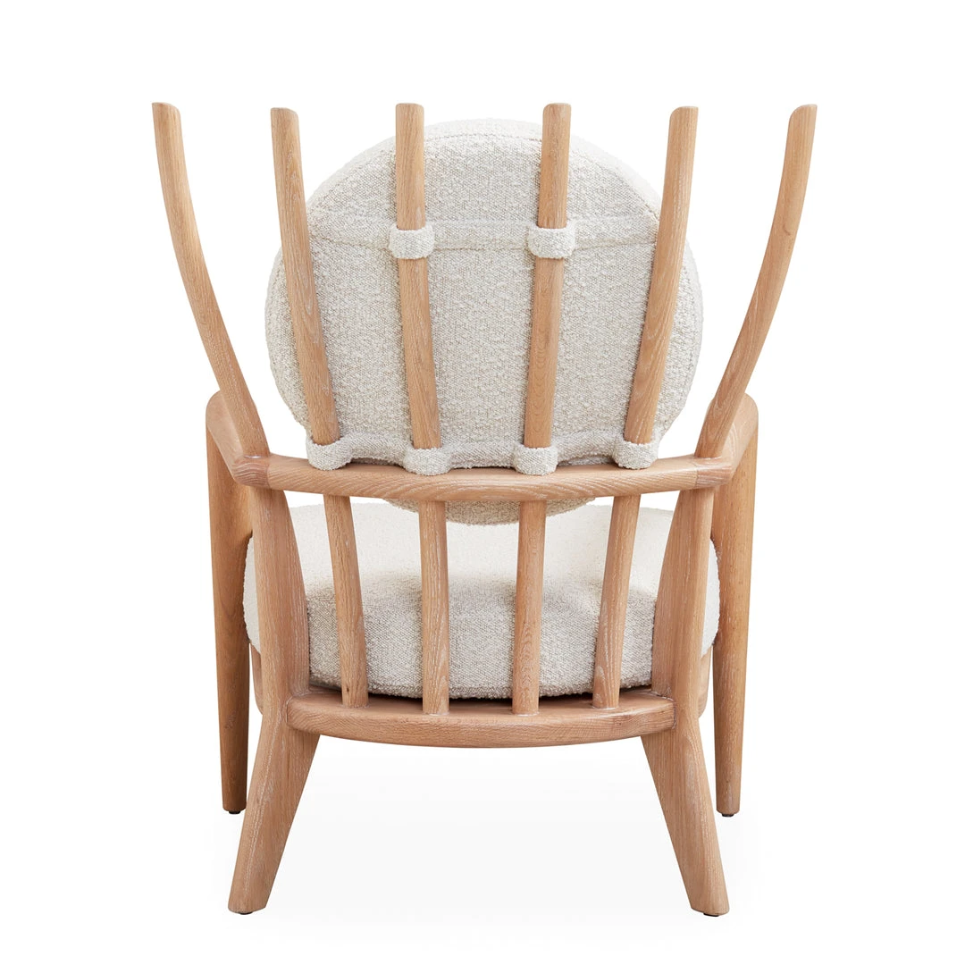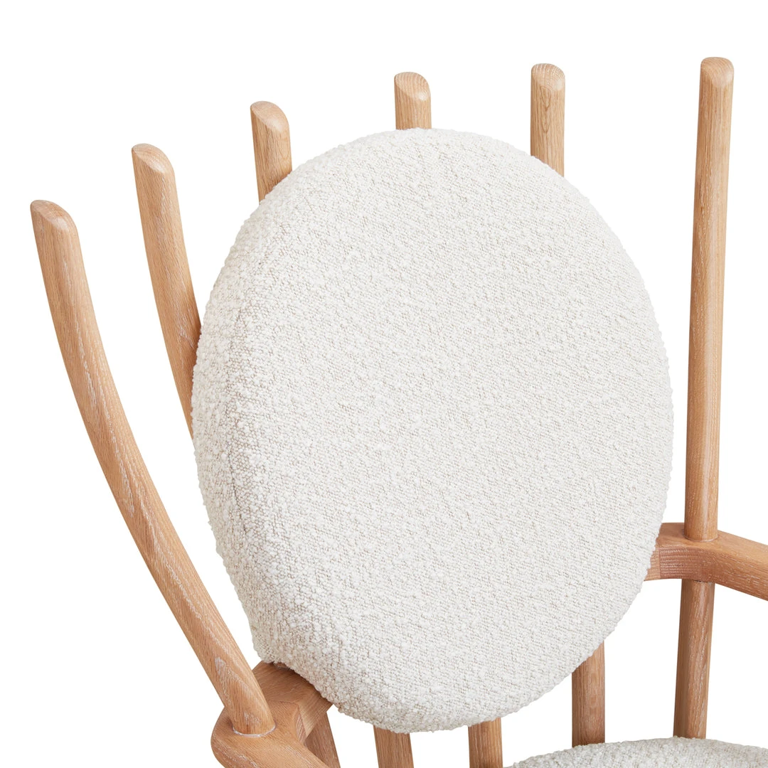 The classic Windsor chair uncaged. Our deconstructed spin features a solid turned oak frame with a perfectly placed back cushion and super thick and comfy seat clad in oatmeal bouclé.